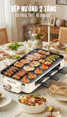 TEKYOMI DKS-321: Giải pháp nướng 2 tầng tại gia không khói, tiện lợi cho mọi gia đình
